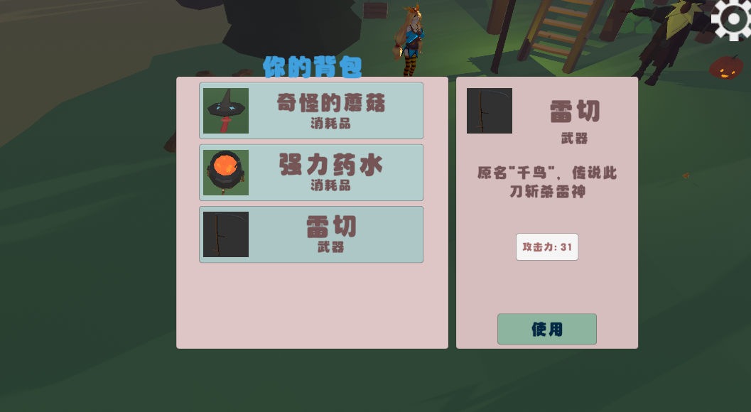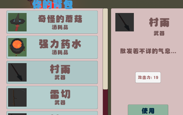 - 背包系统:实现使用道具、切换武器,查看道具信息。