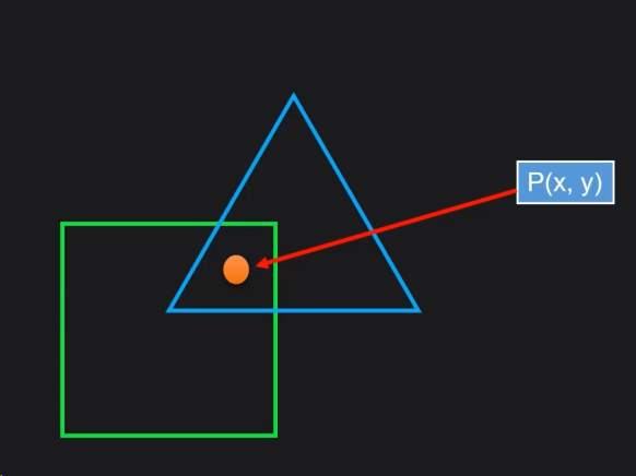 我们知道,若产生碰撞,则必定存在点P(x, y),既存在于三角形的内部,也存在月四边形的内部,此时,用A中的点p与B中的点p相减(都是同一个点)得到的是原点(0, 0),所以得出结论:若C包括原点,则说明产生了碰撞